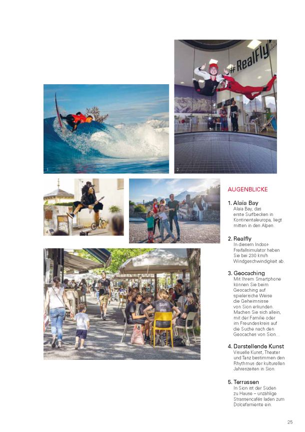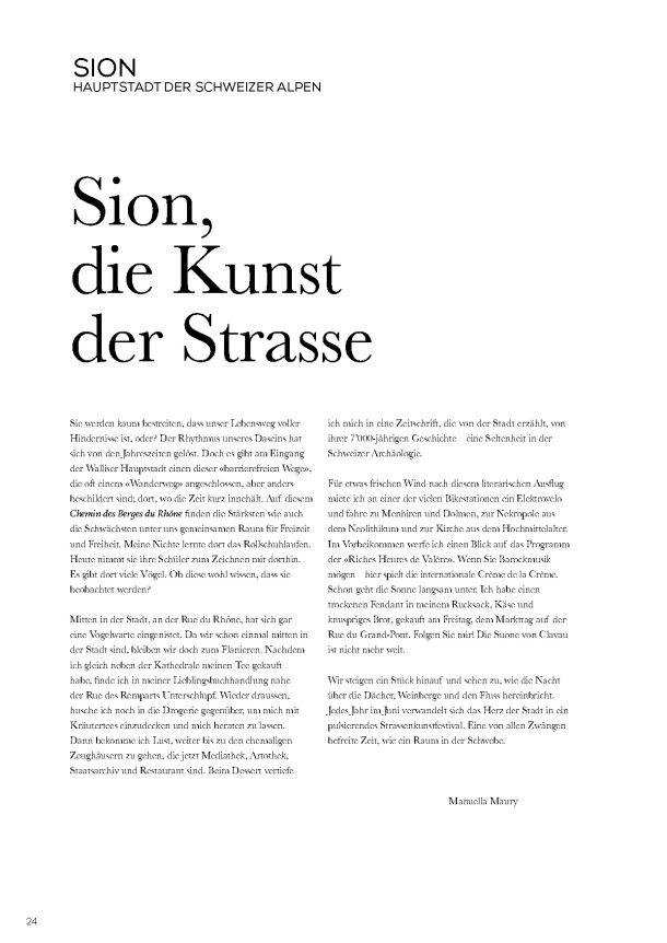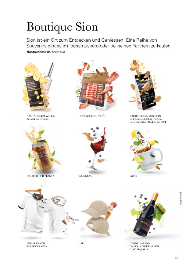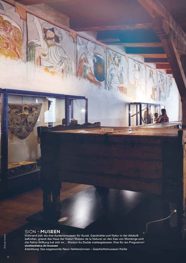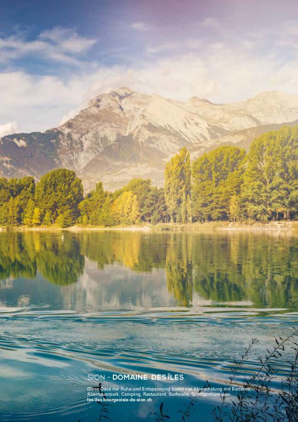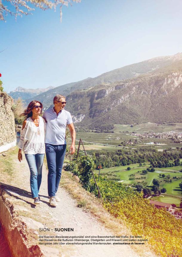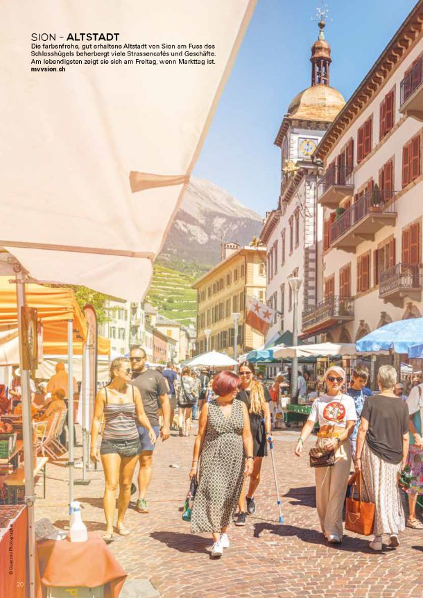 Diese Broschüre ist ein Geschenk des Tourismusbüros von Sion. Wir möchten, dass Sie unsere Region auf diesem Weg mit nach Hause nehmen und mit Ihren Liebsten teilen. Entdecken Sie dabei unsere Lieblingsorte anhand der professionellen Fotos in der Broschüre. Die Walliser Journalistin und Autorin Manuella Maury ist dazu auserkoren worden, unser Ferienreich, das Ihnen unbeschreibliche Momente bescheren soll, mit den passenden Worten zu umschreiben.