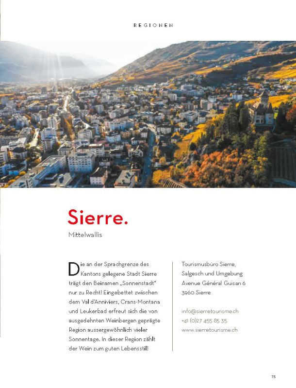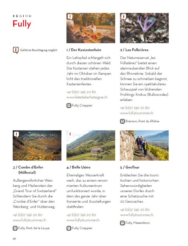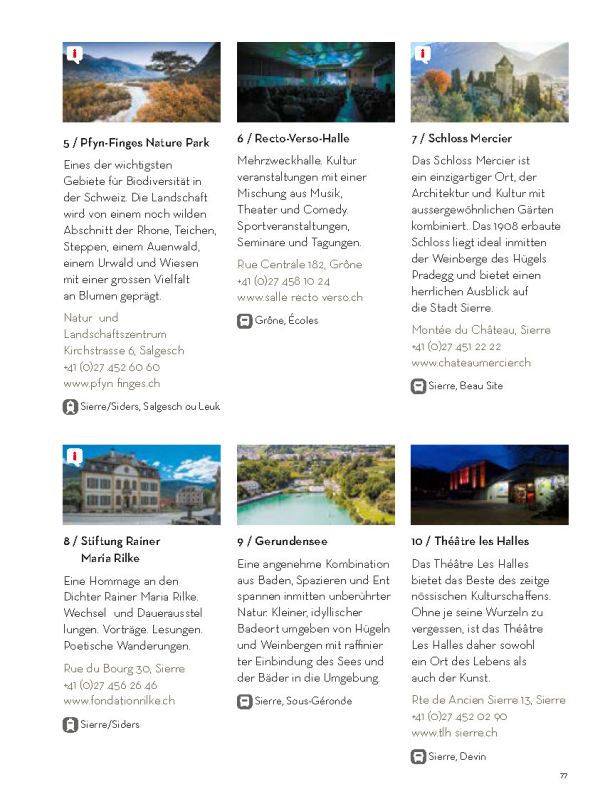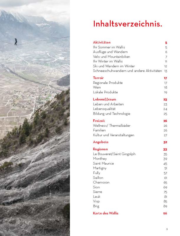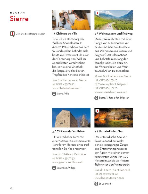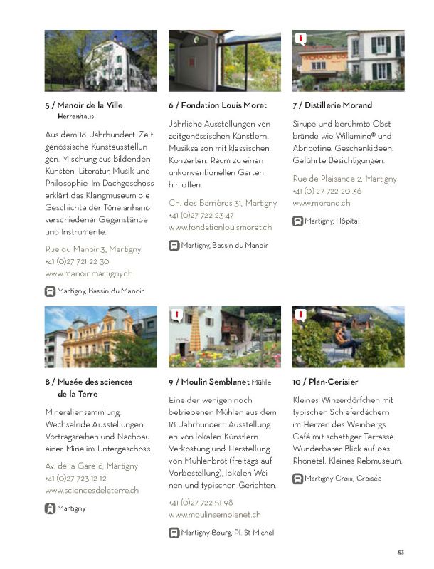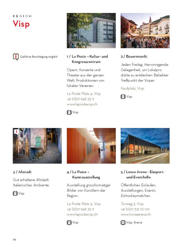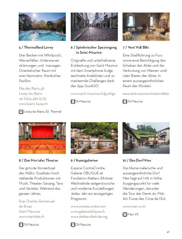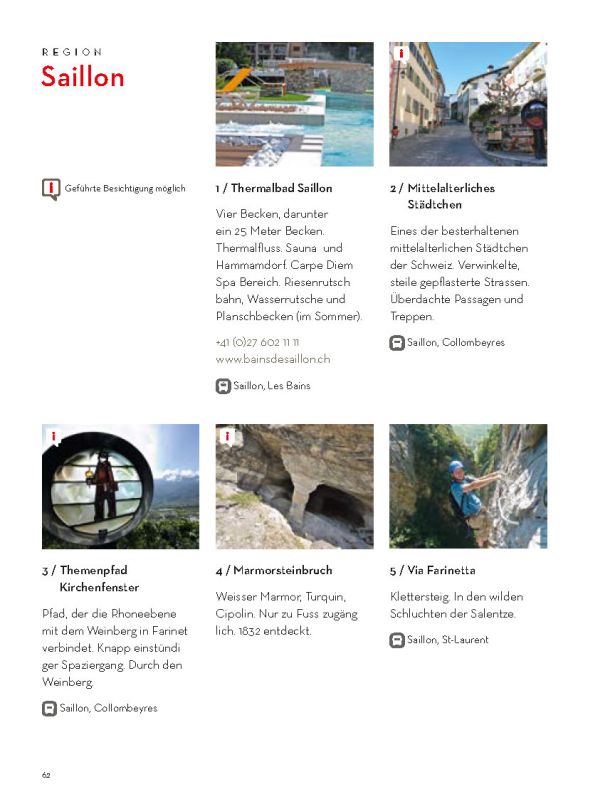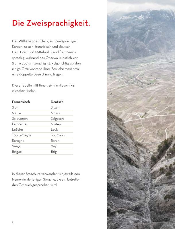 Selbstverständlich ersetzt sie weder die Informationsmaterialien der lokalen Tourismusbüros noch eine umfassendere Präsentation des Wallis und seiner einzigartigen Bergwelt. Sie konzentriert sich auf das touristische Angebot der Walliser Talebene. Ein Angebot, das hält, was es verspricht.