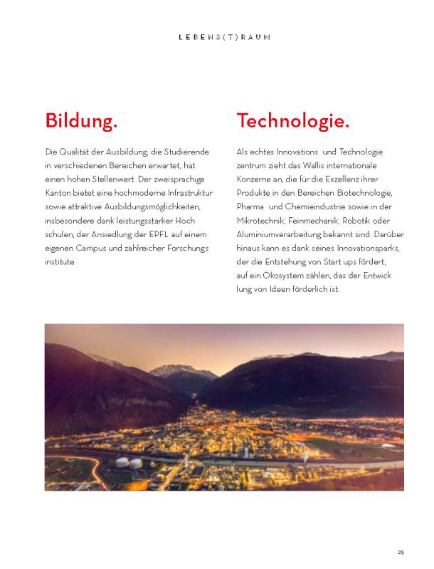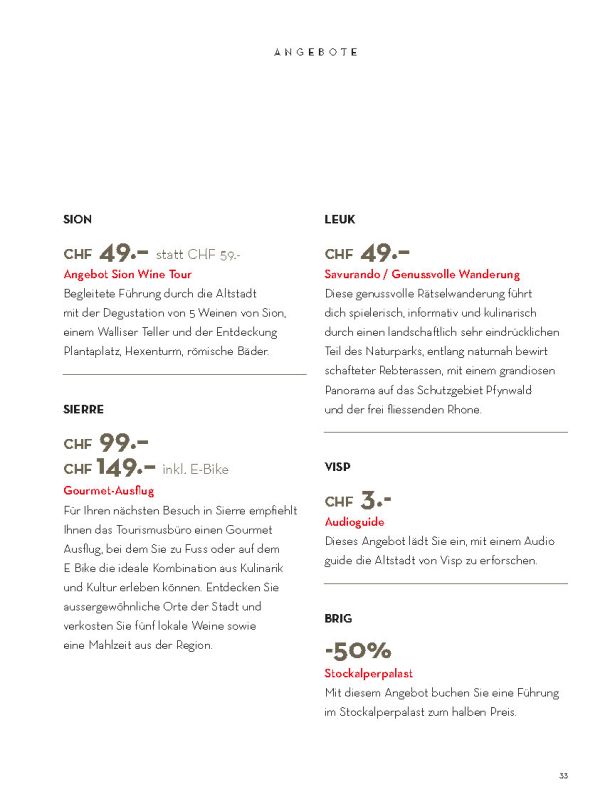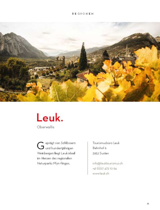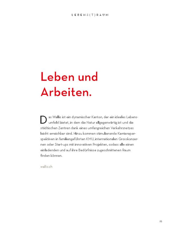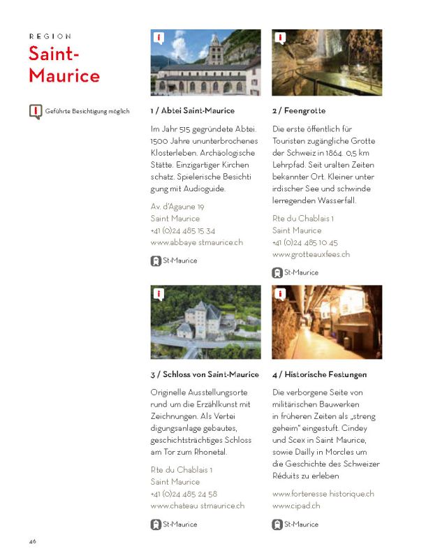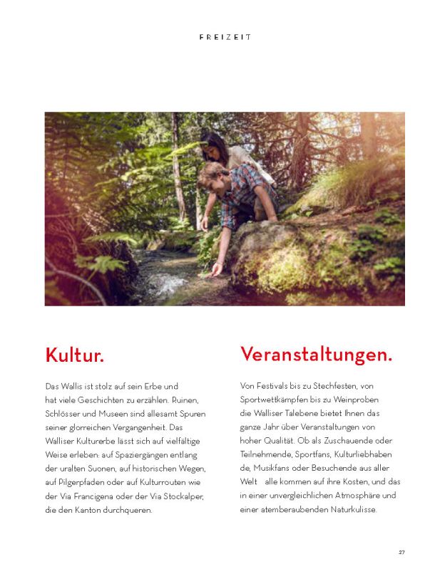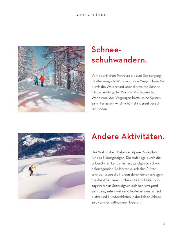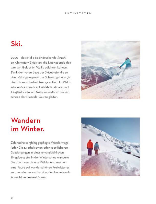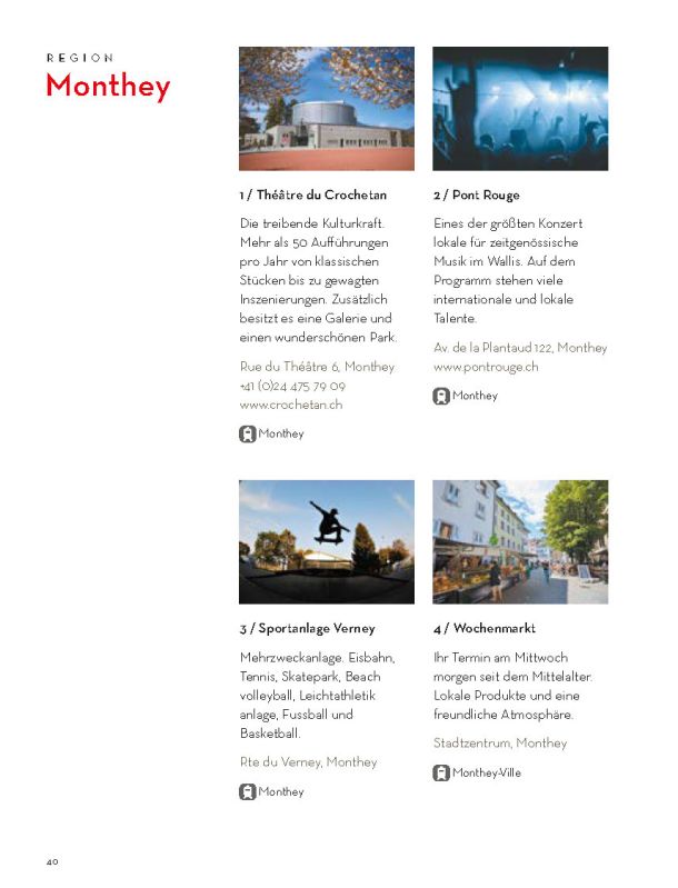 Selbstverständlich ersetzt sie weder die Informationsmaterialien der lokalen Tourismusbüros noch eine umfassendere Präsentation des Wallis und seiner einzigartigen Bergwelt. Sie konzentriert sich auf das touristische Angebot der Walliser Talebene. Ein Angebot, das hält, was es verspricht.