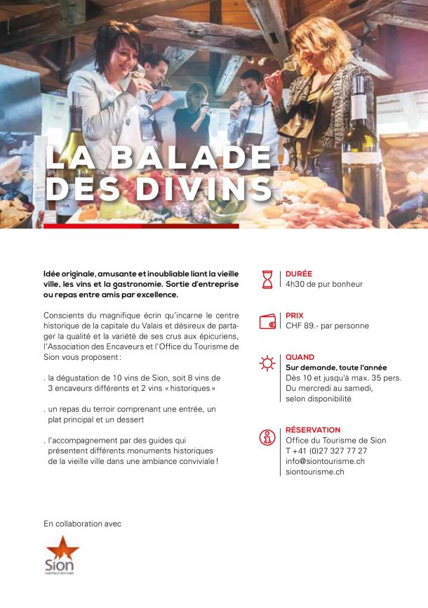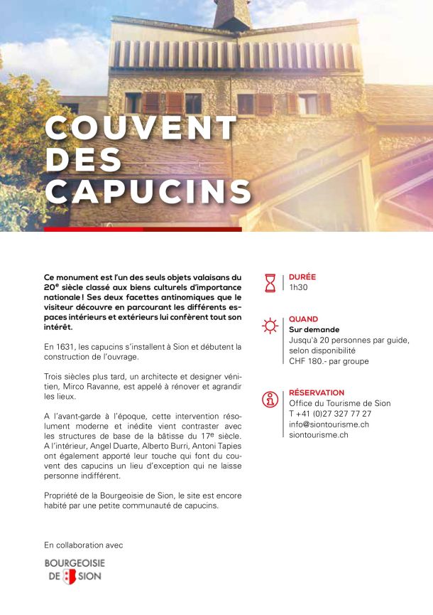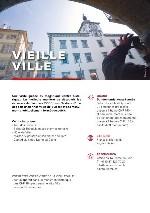 Cette brochure regroupe les offres de visites guidées proposées par l’Office du Tourisme de Sion: